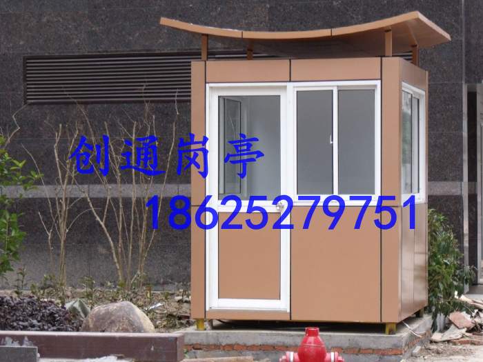 產(chǎn)品說(shuō)明: 主龍骨:鋼構(gòu)、鍍鋅板、金屬雕花板、鋁塑板、安全玻璃等。優(yōu)質(zhì)鋼管或熱浸鋼管焊接成型(選用) 底部:底層為角鋼架,中間為木板,表面為防滑鋁板。崗?fù)さ匕宀捎?5MM夾板上鋪2.0MM防滑鋁地板 內(nèi)外墻:1.2MM外墻金屬雕花板/及龍骨,3MM內(nèi)墻鋁塑板/白色 內(nèi)吊頂:PVC扣板天花吊頂、或豪華裝飾板 頂部:頂部材料采用特殊防水鉸接工藝制作,徹底解除漏水之隱患 內(nèi)部配置:亭內(nèi)有簡(jiǎn)易工作臺(tái)面、電源配電箱、空調(diào)專用線路、插座、開(kāi)關(guān)、照明燈等 注:規(guī)格尺寸及款式可按客戶特殊要求制作